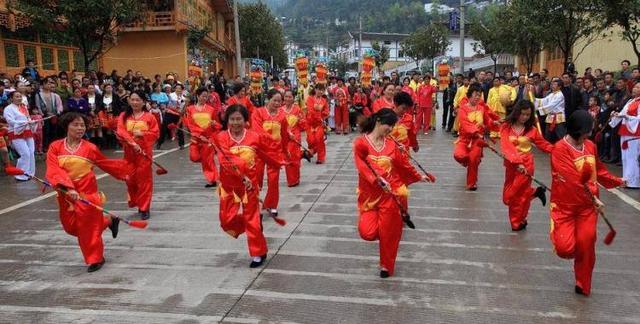 一般首先出場(chǎng)的是”打蓮湘”、“車(chē)幺妹”還有“劃旱船”表演: